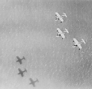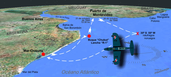 su parte la Aviación Naval envía un Torpedero TBM Avenger y un Sikorsky OS2U-3. |
